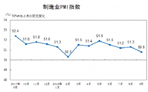 8月份,中國制造業(yè)采購經(jīng)理指數(shù)為50.1%,比上月回落0.3個百分點(diǎn),繼續(xù)保持在擴(kuò)張區(qū)間。