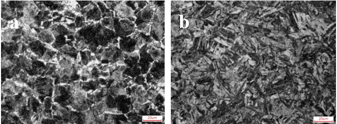 經過淬回火后實驗鋼由模具供貨態的片狀珠光體和網狀鐵素體組織轉變為回火馬氏體和少量殘留奧氏體組織,且抗拉強度和硬度顯著增加。