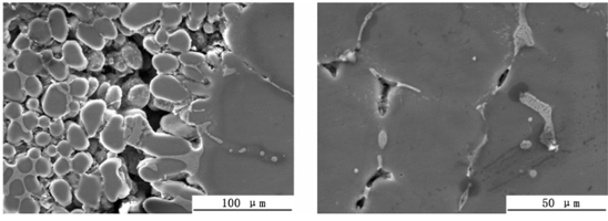 隨著與壓鑄機壓室距離的增加,合金組織由粗大枝晶成長為球形或近球形晶粒。組織形成機理包括了枝晶的破碎和熔體爆發形核。