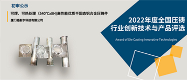 廈門格耐爾科技有限公司的“可焊、可熱處理(540℃x8H)高性能優(yōu)質(zhì)半固態(tài)鋁合金壓鑄件”的創(chuàng)新獎申報已經(jīng)通過活動組委會初審,為保障公信力,接受全行業(yè)監(jiān)督,現(xiàn)進(jìn)入公示階段。