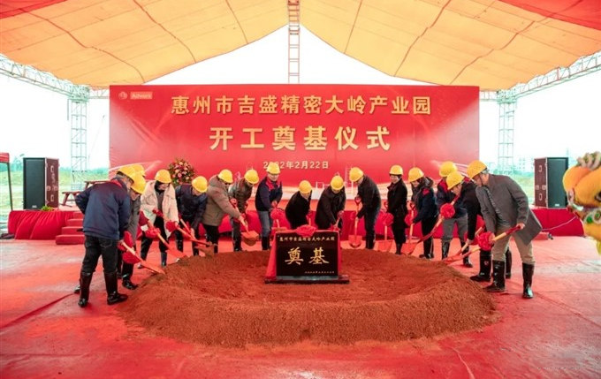 2月22日,惠州市吉邦精密技術有限公司(“吉邦精密”)新生產基地(吉盛精密大嶺產業園)開工奠基儀式,在廣東省惠州市惠東縣大嶺鎮舉行。