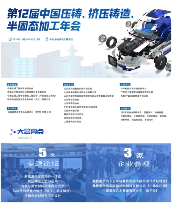 第十一屆中國壓鑄、擠壓鑄造、半固態加工年會日程揭曉