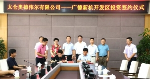 近日(8月2日),太倉奧德偉爾有色金屬零部件有限公司——安徽廣德新杭開發區投資簽約活動在廣德縣舉行。
