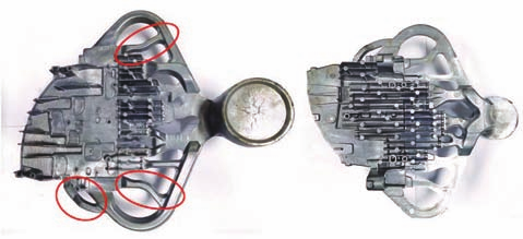 通過采用局部激冷方法等工藝措施,解決了局部厚大部位的縮孔缺陷,最終獲得質量良好的鋁合金減震塔壓鑄件。