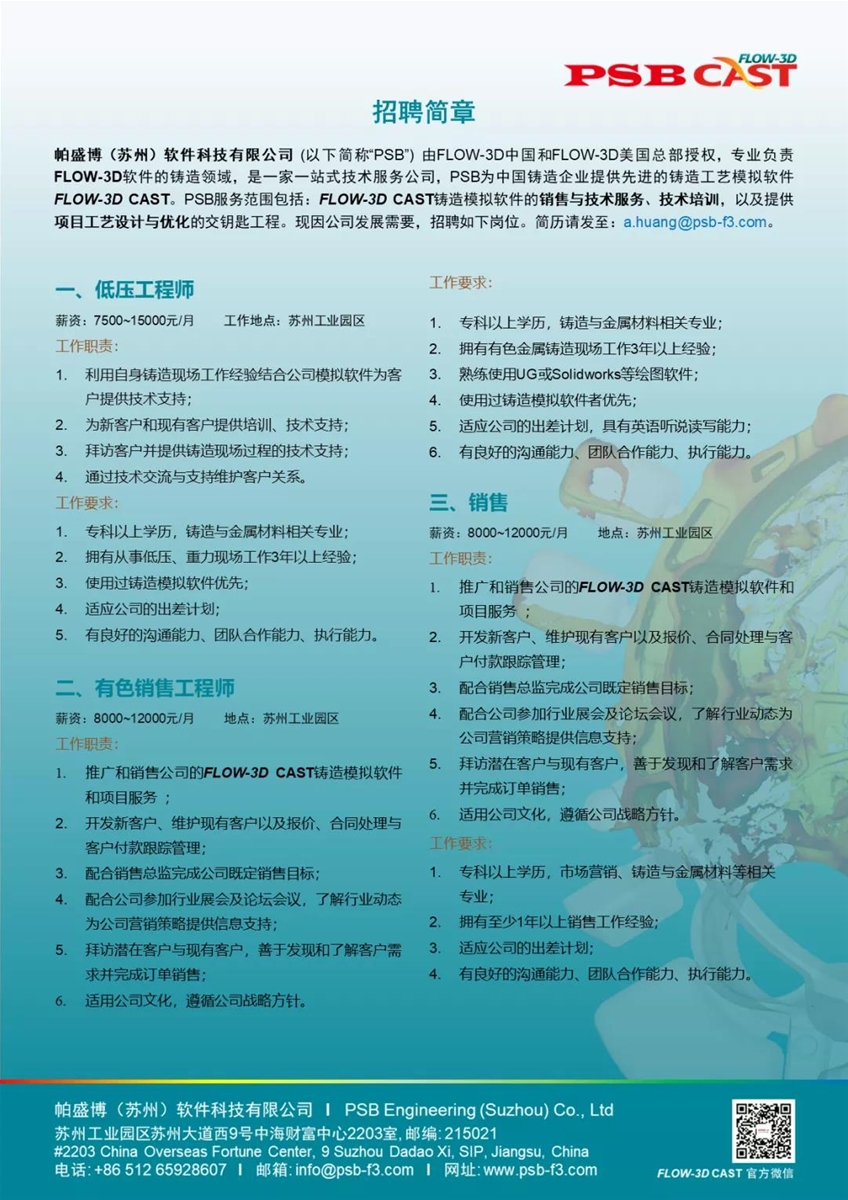 帕盛博(蘇州)軟件科技公司高薪招聘低壓工程師、市場助理、銷售助理。