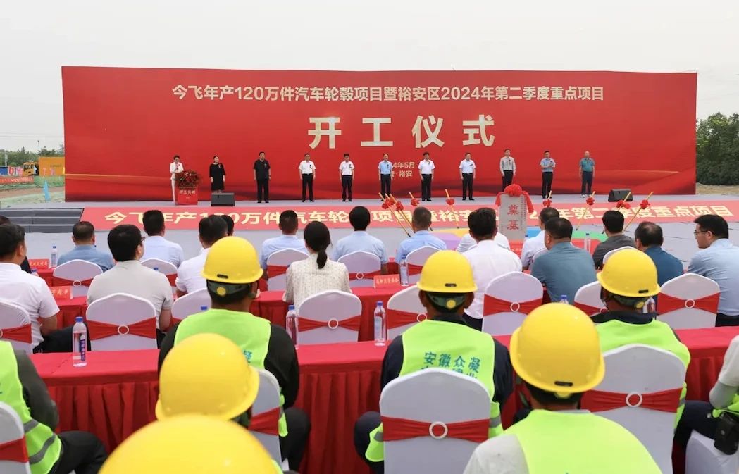 5月26日,今飛凱達年產120萬件汽車輪轂項目開工儀式在六安市裕安區舉行。