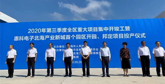 9月28日,2020年第三季度全區重大項目集中開竣工暨惠科電子北海產業新城首個園區開園、邦定項目投產儀式在廣西惠科電子北海產業新城S5園區舉行。