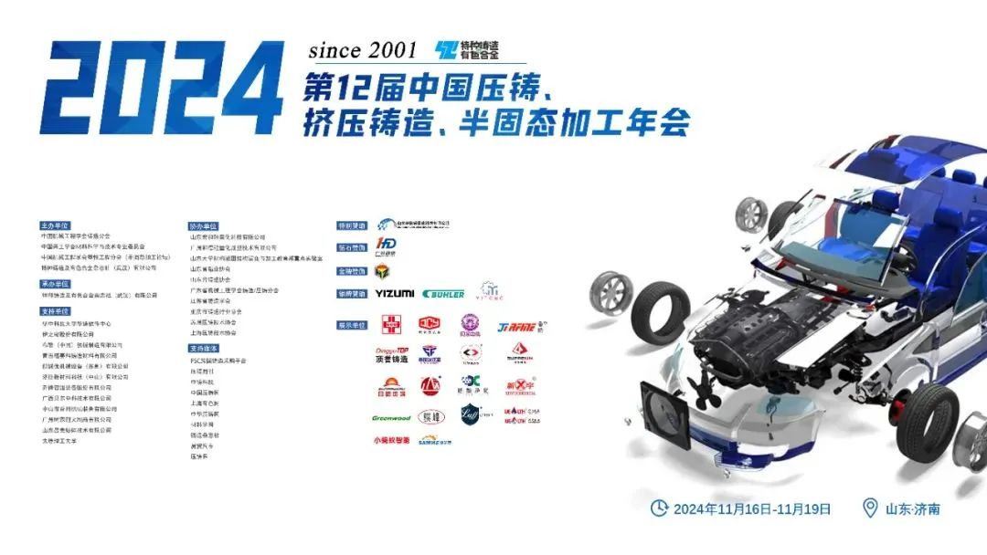 2024第十二屆中國壓鑄、擠壓鑄造、半固態加工年會于11月16-19日在濟南美悅云禧酒店舉辦。