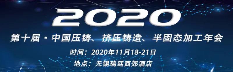 2020年(第十屆)中國壓鑄、擠壓鑄造、半固態加工年會將于2020年11月18-21日在無錫瑞廷西郊酒店舉行。