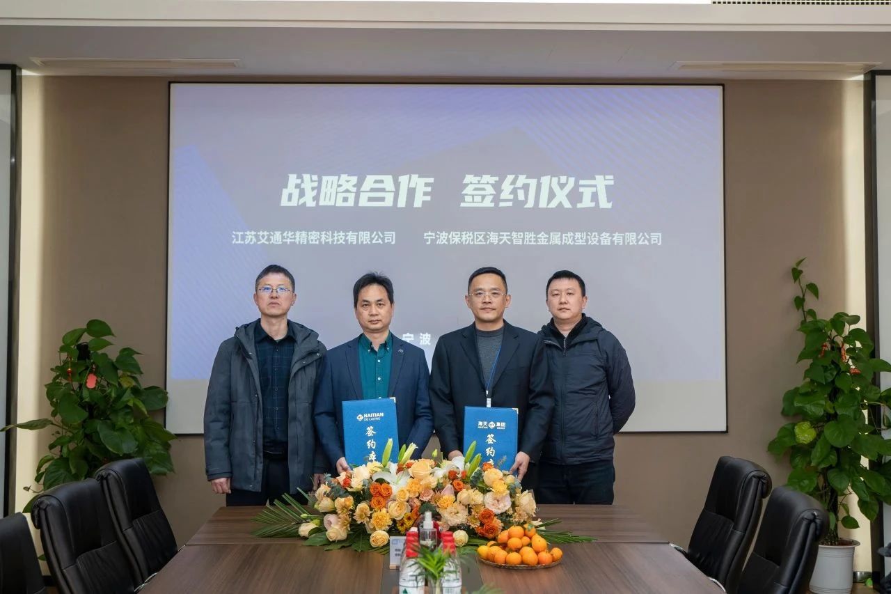 寧波保稅區海天智勝金屬成型設備有限公司與江蘇艾通華精密科技有限公司正式達成戰略合作。