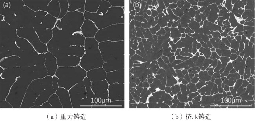 壓鑄鋁合金ZL102室溫組織中的物相包括初生α(Al)、鋁硅共晶組織、初晶硅以及少量的金屬間化合物。固溶處理后,壓鑄鋁合金ZL102中的硅相發生了熔斷和球化。