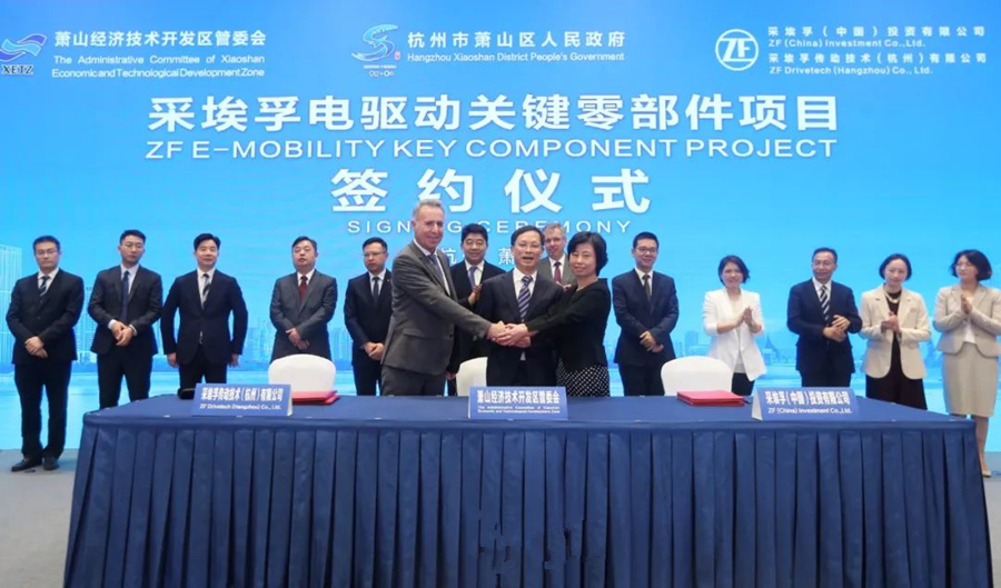 9月22日,杭州蕭山技術經濟開發區與采埃孚就電驅動關鍵零部件項目簽約儀式在杭州國際博覽中心舉行。