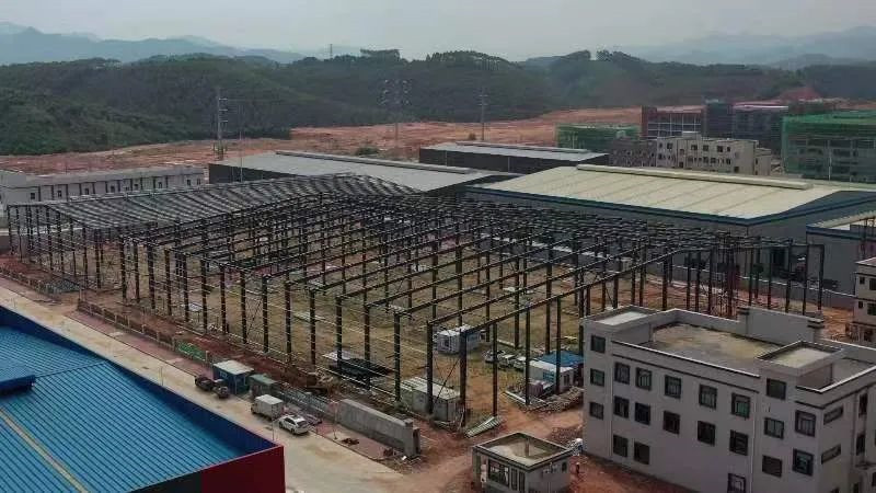 億眾汽車鋁合金壓鑄件項目正穩步推進,其中,兩個鋼結構車間的主體工程已經搭建完畢,正在進行墻面裝修。