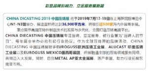 2019 中國壓鑄展 將于2019年7月17-19日在上海新國際博覽中心N1-N3館舉辦。