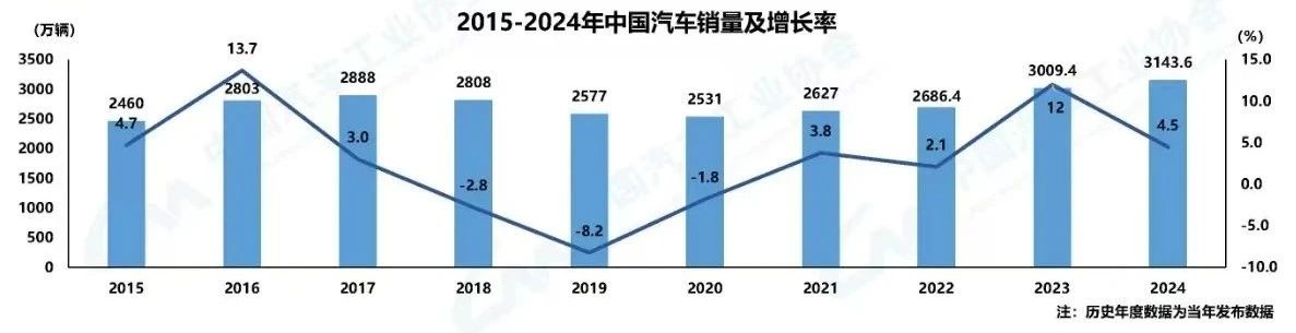 我國2024年汽車產銷量分別達到了3128.2萬輛和3143.6萬輛,同比分別增長3.7%和4.5%。