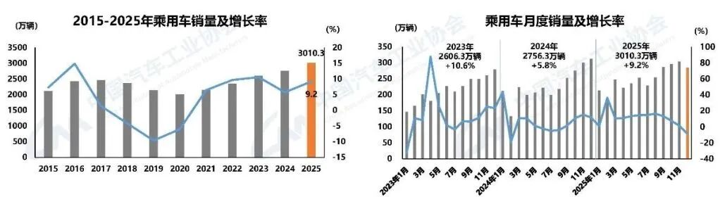 ![]() 據中國汽車工業協會最新數據分析顯示,2025年中國汽車行業頂住貿易保護、全球產業鏈重構等外部壓力,成功攻克技術攻關難題、破解行業內卷等多重挑戰,實現產業規模與發展質量雙提升,全年汽車產銷量再創歷史新高,連續17年穩居全球第一,展現出強勁的發展韌性與活力。 數據顯示,2025年我國汽車產銷連續三年保持3000萬輛以上規模,全年產銷量分別完成3453.1萬輛和3440萬輛,同比分別增長10.4%和9.4%。其中,乘用車板塊表現穩健,全年產銷量首次突破3000萬輛大關,分別完成3027萬輛和3010.3萬輛,同比分別增長10.2%和9.2%,為行業整體增長奠定堅實基礎。