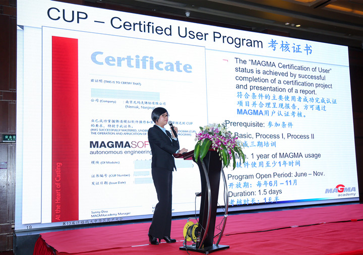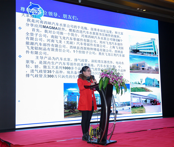 于兆梅女士 接著,邁格碼中國(guó)的李鐵先生,以“精鑄工藝的模擬及優(yōu)化”作報(bào)告,邁格碼中國(guó)的嚴(yán)世松,分享總結(jié)了“使用MAGMASOFT 6步法(MAGMA APPROACH)高效解決充型難題”的報(bào)告,而來(lái)自MAGMA中國(guó)培訓(xùn)學(xué)院的豆子春女士介紹了邁格碼中國(guó)針對(duì)用戶(hù)的培訓(xùn)服務(wù)。