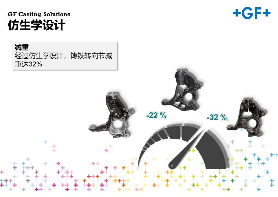 ![]() GF,為全球知名汽車廠商提供輕質優質鑄造零部件 在鑄造領域,來自瑞士的GF喬治費歇爾系一家全球化的輕量化鑄件產品生產商和提供商。喬治費歇爾集團成立于1802年,其專注的在工業品制造領域深耕200余年本身就代表著可信賴口碑與品質。其旗下的GF成型方案事業部,通過鑄件輕量化技術,為乘用車、商用車及其它工業應用研發生產各類輕金屬或者鐵材質的鑄造零件。在中國,GF成型方案事業部,自2005年起實施本地化生產,在蘇州、昆山建立一個研發中心和兩家工廠,為國內外知名汽車制造商提供創新型和高質量的球鐵、鋁合金和鎂合金鑄造零部件。 鎂合金材料,GF實現汽車輕量化的重要途徑 喬治費歇爾金屬成型科技(蘇州)有限公司項目工程師劉伯禹先生表示:“多年來,我們的研發重點始終集中在‘實現產品輕量化’、‘降低二氧化碳排放’。輕量化是一個系統性工程,是一個不斷實踐、總結,不斷發展的過程。我們通過多年的研究,獲得許多輕量化新技術及經驗。” 據介紹,GF喬治費歇爾主要是通過多個方面來實現輕量化技術。仿生學設計:仿生學技術設計的靈感來源于自然,如轉向節產品的結構是模仿樹的枝狀結構。在滿足應力要求的前提下,進行結構優化。功能集成設計:如減震支架產品,通過集成電線和組件的連接點,達到產品的高度集成,相比傳統的鈑金件減少了多個相關零件。