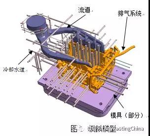 1. 實驗及模擬仿真 1.1產品模型及模擬條件 1.1.1 產品模型 如圖4所示,此次試驗以長城汽車某缸體為案例。缸體為汽車發(fā)動機結構承載部件,尤其缺陷位置需封密缸內高壓氣體與缸套冷卻水,要求具有較高的致密度。