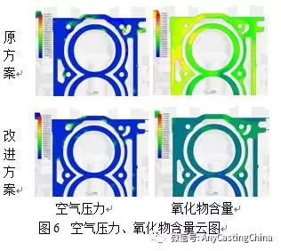 ![]() 摘要:本文采用數值模擬分析方法,利用AnyCasting鑄造模擬軟件對高壓件產品表面氣渣孔成因進行了探究。通過AnyCasting鑄造模擬軟件對鑄件充型過程進行分析,著重分析了充型過程中鋁液前端氧化物的形成過程,并輔助含氣量及空氣壓力判據進行分析。試驗結果顯示,當氧化物和含氣量共同作用與鑄件同一位置時,則形成加工表面氣渣孔的概率較大。 關鍵詞:數值模擬; AnyCasting; 氧化物 * 產品缺陷展示 如圖1~3所示,某缸體頂面加工面氣渣孔缺陷,在氣渣孔下方有氣孔出現(xiàn),對缺陷件進行統(tǒng)計分析,其缺陷位置固定。此缺陷在第一次小批量生產中報廢率為5%,造成廢品率升高。由于該缺陷是氧化夾渣及氣體等缺陷共同作用的結果,所以在開發(fā)前期靠模流分析軟件中單一缺陷的評判標準是無法對氣渣孔位置進行準確定位的。因此我司此次利用氧化夾渣判據及氣體判據進行綜合評判,以形成判定標準,從而指導新產品的開發(fā)。