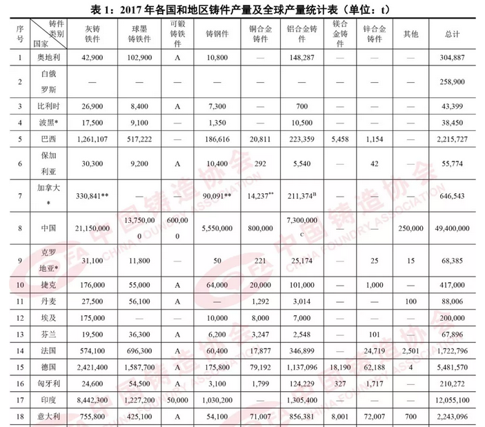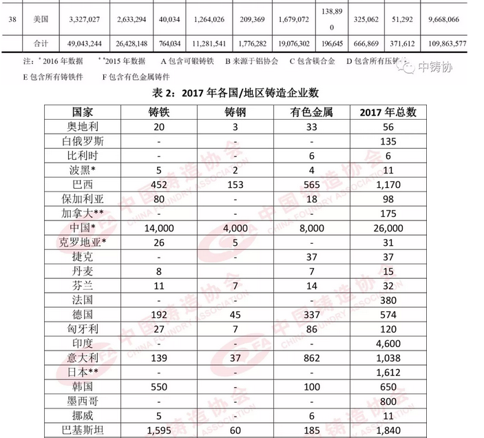 ![]() 根據(jù)美國(guó)鑄造協(xié)會(huì)Modern Casting雜志進(jìn)行的全球鑄件產(chǎn)量普查,2017年,全球鑄件產(chǎn)量達(dá)到1.098億噸(見表1),比2016年增長(zhǎng)近550萬噸,同比增長(zhǎng)5.3%。這是連續(xù)2年增幅不足0.5%之后實(shí)現(xiàn)的較大增長(zhǎng)。 在過去兩年均參與普查的33個(gè)國(guó)家和地區(qū)中,25個(gè)國(guó)家和地區(qū)的鑄件產(chǎn)量同比增長(zhǎng)。鑄鐵件產(chǎn)量實(shí)現(xiàn)全面增長(zhǎng),其中灰鐵增長(zhǎng)6%,球墨鑄鐵增長(zhǎng)3.8%。鑄鋼件產(chǎn)量增長(zhǎng)6%,鋁合金鑄件增長(zhǎng)6.7%。 在10大鑄件生產(chǎn)國(guó)中,中國(guó)的鑄件產(chǎn)量達(dá)到4940萬噸,增長(zhǎng)220萬噸,占全球鑄件產(chǎn)量近45%,與去年持平;美國(guó)鑄件產(chǎn)量增長(zhǎng)了2.9%,以灰鑄鐵生產(chǎn)為主的印度,產(chǎn)量增長(zhǎng)了6.2%;俄羅斯的鑄件產(chǎn)量增幅最大,為8.3%。10大鑄件生產(chǎn)國(guó)的產(chǎn)量見圖1。 2016-2017年,全球鑄件企業(yè)數(shù)量減少約987家,降幅為2%。2017年各國(guó)的鑄造廠數(shù)量見表2。 2016年,全球鑄件企業(yè)的平均產(chǎn)量為2253噸;2017年,全球鑄件企業(yè)的平均產(chǎn)量為2424噸,增幅7.6% 本報(bào)告中的數(shù)據(jù)由各國(guó)和地區(qū)的鑄造協(xié)會(huì)、世界鑄造組織以及歐洲鑄造協(xié)會(huì)提供。