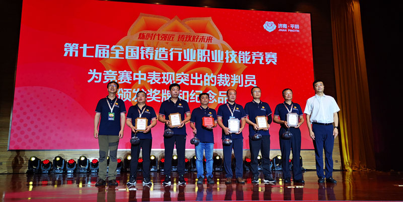 中國機械工業聯合會副會長、中國鑄造協會會長張立波,平陰縣委書記王秀成,濟南市人社局副局長孟昭華,中國鑄造協會執行副會長兼秘書長張志勇,平陰縣委副書記、縣長潘建軍,中國鑄造協會執行副會長范琦、專務兼常務副秘書長王東生,平陰縣人大常委會主任尚海成、政協主席劉忠亮、經濟開發區管委會主任李子元,中國熱處理協會秘書長呂東顯,山西省晉城市政府辦公室一級調研員上官東亮,玫德集團黨委書記、董事局副主席劉勇,金磚國家技能發展與技術創新大賽組委會副主任程帥,濟南圣泉集團股份有限公司副總經理張吉祥,諾瑞肯集團亞太區高級副總裁、迪砂中國總經理魏寶華等領導,以及來自山東、遼寧、香港、湖北、山西、天津、江蘇、河南、廣東、吉林、江西、廣西、河北、齊齊哈爾、晉城、泊頭、溧陽等協(學)會社團組織領導參加閉幕式。 閉幕式上,賽程兩天來一直冒著酷暑奮戰在各自崗位上的裁判員、決賽賽場企業代表、參賽選手、媒體代表悉數到場。