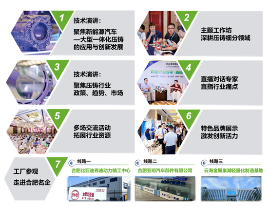 ![]() 2023全國(guó)壓鑄年會(huì)將于“3月2—224日”在合肥香格里拉大酒店舉辦,會(huì)議以“新能源汽車制鑄造領(lǐng)航大壓時(shí)代”為主題,聚焦行業(yè)熱點(diǎn)話題:涉及新材料研發(fā)、汽車主機(jī)廠產(chǎn)品及工藝設(shè)計(jì)、壓鑄上市公司技術(shù)及管理經(jīng)驗(yàn)分享等;內(nèi)容覆蓋壓鑄全產(chǎn)業(yè)鏈:囊括設(shè)計(jì)、材料、模具、裝備、生產(chǎn)及用戶端等;700+參會(huì)代表:集結(jié)整車廠、壓鑄廠、高校及科研機(jī)構(gòu)以及知名配套商等。誠(chéng)邀各位壓鑄同仁蒞臨! 合肥—未來(lái)新能源汽車之都 近年來(lái),合肥新能源產(chǎn)業(yè)迅速崛起,已發(fā)展為極具影響力的新能源汽車制造基地,合肥新能源產(chǎn)業(yè)正在迅速集群,已聚集規(guī)上企業(yè)300多家,包括比亞迪、蔚來(lái)、大眾(安徽)、合肥長(zhǎng)安、安凱汽車等6家整車制造企業(yè),壓鑄零部件等配套企業(yè)也紛紛向合肥靠攏。此次全國(guó)壓鑄年會(huì)走進(jìn)合肥,帶您實(shí)地考察合肥名企:合肥比亞迪弗迪動(dòng)力精工中心、合肥亞明汽車部件有限公司、云海金屬巢湖輕量化制造基地。 工廠參觀—走進(jìn)合肥標(biāo)桿企業(yè) 線路一:合肥比亞迪弗迪動(dòng)力精工中心 參觀路線:壓鑄車間—機(jī)加車間 精工中心隸屬于比亞迪股份有限公司全資子公司弗迪動(dòng)力有限公司,成立于2006年,是一家集產(chǎn)品開(kāi)發(fā)、模具設(shè)計(jì)、鑄造、機(jī)加工為一體的鋁合金零部件專業(yè)制造商。自主開(kāi)發(fā)、生產(chǎn)多款汽車發(fā)動(dòng)機(jī)零部件、變速箱零部件以及新能源汽車鋁合金壓鑄件。率先在國(guó)內(nèi)實(shí)現(xiàn)壓鑄全鋁缸體的批量生產(chǎn)。