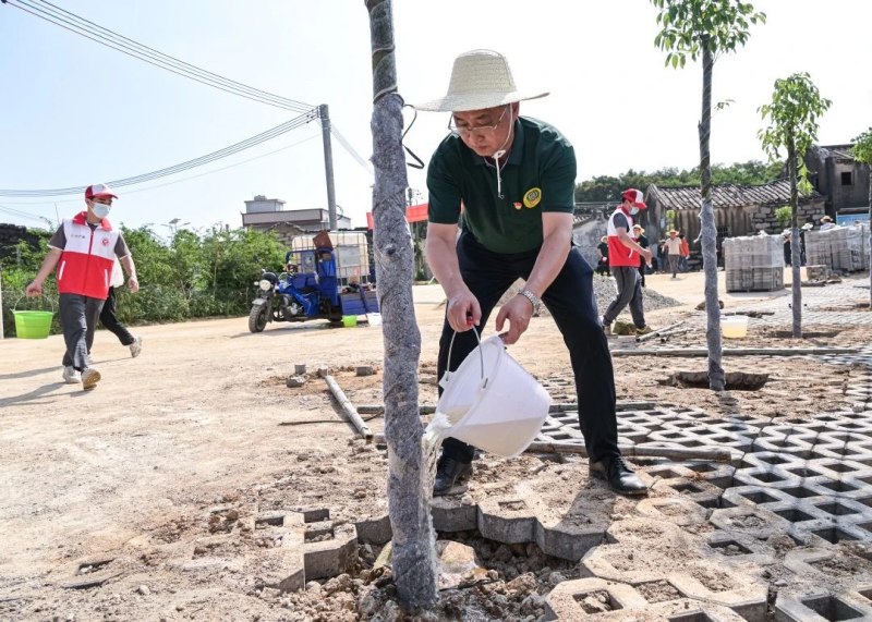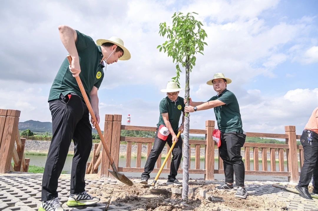 座談會(huì)結(jié)束后,廣東省鑄協(xié)一行人前往待植林地開展植樹活動(dòng)。植樹現(xiàn)場(chǎng),3-5人一小組,大家分工合作,扛樹、鏟土、澆水,現(xiàn)場(chǎng)一片熱火朝天景象。經(jīng)過(guò)大家的努力,350株樹苗在后港村“安家落戶”,在陽(yáng)光下煥發(fā)著勃勃生機(jī)。