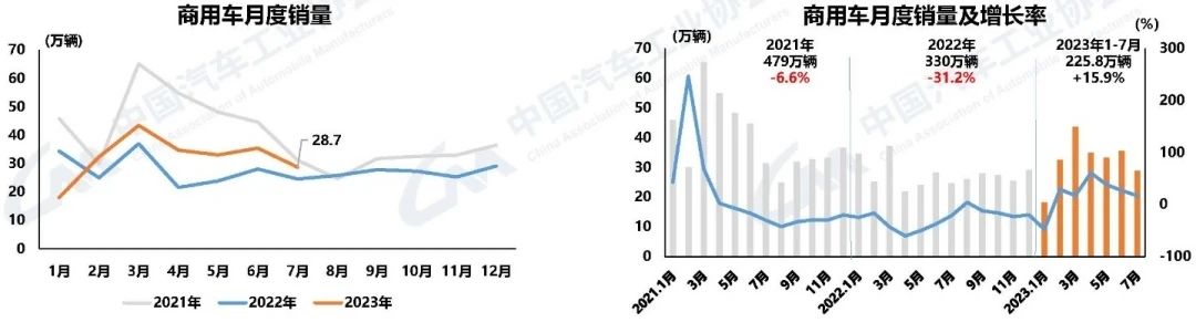1-7月,乘用車產銷分別完成1339.7萬輛和1336.8萬輛,同比分別增長6%和6.7%;商用車產銷分別完成225.3萬輛和225.8萬輛,同比分別增長16.9%和15.9%;新能源汽車產銷分別完成459.1萬輛和452.6萬輛,同比分別增長40%和41.7%,市場占有率達到29%。