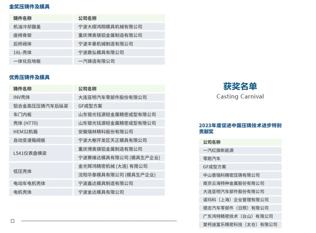 群英薈萃,百家爭鳴 鑄件嘉年華再度華麗登場 2023“鑄件嘉年華”內(nèi)容再度重磅升級,集合“壓鑄件評選”、“精品鑄件鑒賞”、“有色鑄件展示”以及“企業(yè)群英匯”等活動,共91家企業(yè)、145個鑄件參加了該活動。全方位展示了來自于國內(nèi)外百余件精品壓鑄件及其制造能力與水平。