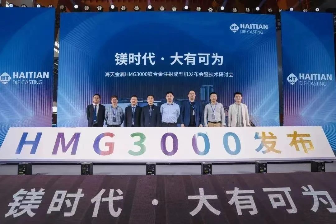 錫南科技登陸A股 另外,2023年2月27日上午,滁州多利汽車科技股份有限公司在深圳證券交易所主板上市,證券簡稱:多利科技,證券代碼:001311。多利科技成立于2010年,主要從事汽車沖壓件、壓鑄件及相關(guān)模具的開發(fā)、生產(chǎn)、銷售。2023年3月31日,無錫日聯(lián)科技股份有限公司首次公開發(fā)行股票并在上交所科創(chuàng)板上市。股票名稱:日聯(lián)科技,股票代碼:688531。日聯(lián)科技成立于2009年,主要從事高端X射線檢測儀器和裝備的研發(fā)、生產(chǎn)、銷售與服務(wù)。日聯(lián)科技的產(chǎn)品和技術(shù)廣泛應(yīng)用于壓鑄及鑄造行業(yè)。 TOP 4 大型半固態(tài)鎂合金注射成型機(jī)新突破,助推鎂合金材料應(yīng)用推廣 2023年5月12日上午,海天金屬HMG3000鎂合金注射成型機(jī)發(fā)布會在海天金屬保稅區(qū)基地舉行。HMG3000 鎖模力高達(dá)3000T(噸),最大螺桿直徑達(dá)到150mm,理論注射量超過10kg,是目前行業(yè)最大的半固態(tài)鎂合金注射成型機(jī)之一。使得鎂合金注射成型機(jī)的噸位由1000多噸躍升至3000噸。HMG3000為大尺寸鎂合金的多聯(lián)屏顯示背板、座椅骨架、車內(nèi)門板等產(chǎn)品的生產(chǎn)提供解決方案。