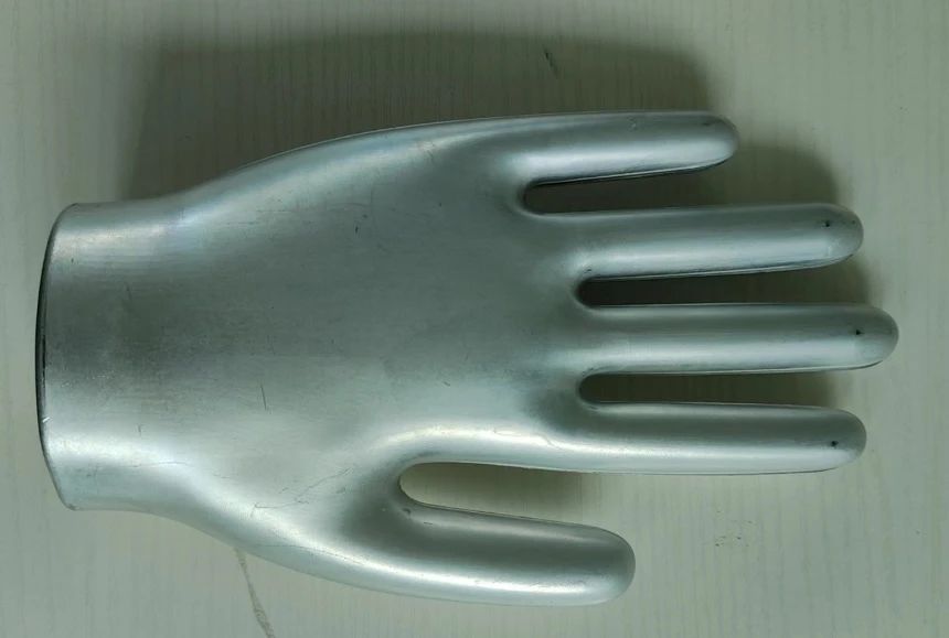 該產(chǎn)品為新能源智能重卡車身承載結(jié)構(gòu)件,實現(xiàn)以鋁代鋼,減重達50%,鑄件采用液態(tài)模鍛工藝制備,進行T6熱處理強化,100%射線二級探傷。 零部件輕量化、集成化是目前行業(yè)發(fā)展趨勢。針對復雜形狀、力學性能和內(nèi)部質(zhì)量要求高的輕合金鑄件,在一些銷孔部位或壁厚變化較大的部位,仍易出現(xiàn)缺陷,限制了批產(chǎn)合格率的提升。在這樣的背景下,公司采用擁有自主知識產(chǎn)權(quán)的大型擠壓鑄造設備,通過定點強冷以及局部補縮等工藝優(yōu)化,將金屬的充型控制與設備的操作系統(tǒng)進行適應性一體嵌入,為復雜結(jié)構(gòu)高性能鋁合金零部件的高效制備提供支撐。 鑒賞鑄件二 鑄件名稱:手模