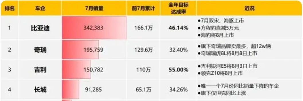 lisa 發(fā)表于2024/8/7 9:18:32 新能源汽車(chē)7月銷(xiāo)售數(shù)據(jù)