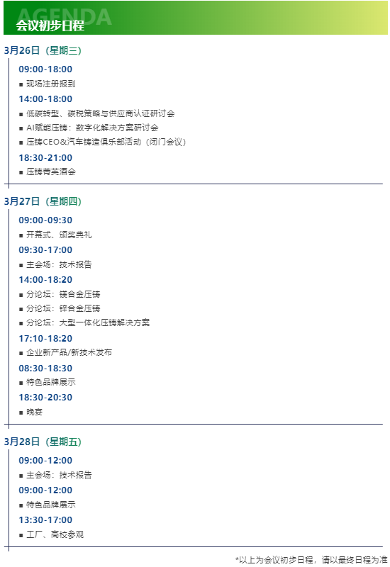 ![]() 2025年全國壓鑄行業(yè)年會(huì)—第二十屆中國國際壓鑄會(huì)議將于3月26-28日在南京富力萬達(dá)嘉華酒店舉辦,旨在匯聚全球?qū)W術(shù)界、企業(yè)界、車廠等各方力量,搭建一個(gè)高端對(duì)話與合作的平臺(tái)。會(huì)議以“鏈動(dòng)全球壓鑄”為目標(biāo),與全球壓鑄同仁一起剖析壓鑄行業(yè)最新發(fā)展趨勢(shì),探討競爭格局,為行業(yè)未來發(fā)展提前布局、科學(xué)規(guī)劃提供一些思路。誠邀壓鑄同仁蒞臨參會(huì)!