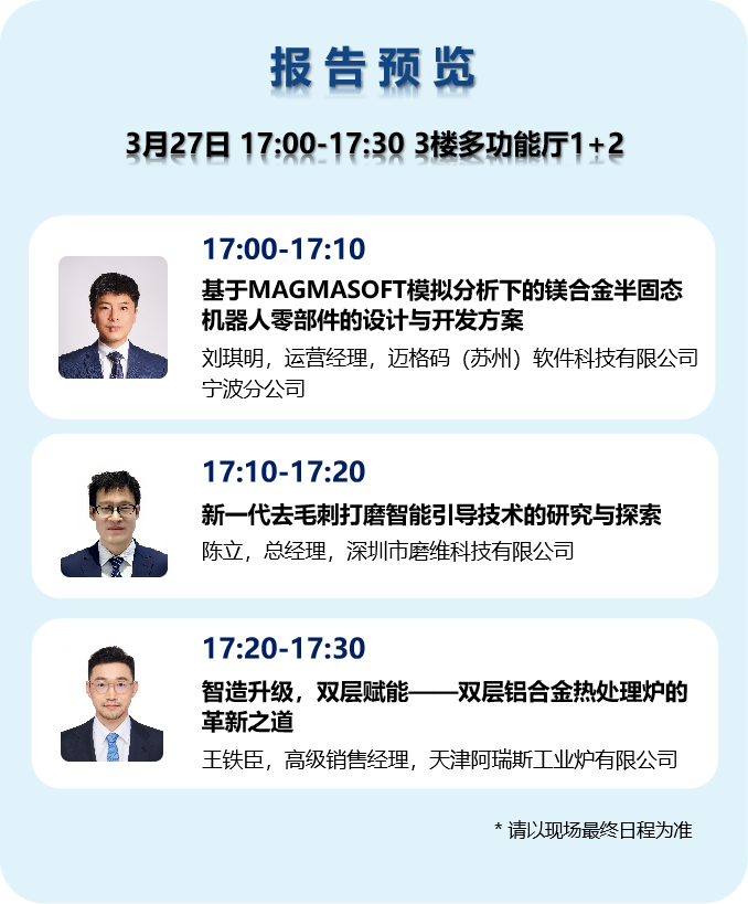 本次會議旨在匯聚全球學術界、企業界、車廠等各方力量,搭建一個高端對話與合作的平臺。會議以“鏈動全球壓鑄”為目標,與全球壓鑄同仁一起剖析壓鑄行業最新發展趨勢,探討競爭格局,為行業未來發展提前布局、科學規劃提供一些思路。誠邀壓鑄同仁蒞臨參會!