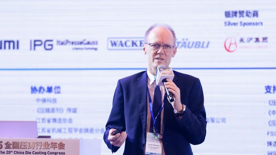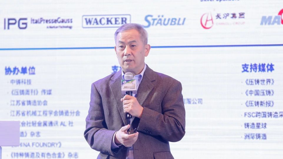 會議現場 金陵鑄夢,盛會啟航 中國機械工程學會鑄造分會理事長、中國機械科學研究總院集團有限公司首席科學家、世界鑄造組織主席婁延春先生出席開幕式并致歡迎辭。他對與會嘉賓的到來表示熱烈歡迎,對所有合作伙伴表示衷心感謝。他表示,當前,全球制造業格局加速重構,綠色化轉型帶來新能源汽車爆發式增長,驅動輕量化技術迭代。2023年,中國鎂合金壓鑄件市場規模同比增長32%,其密度較鋁合金降低30%,抗拉強度提升20%,在蔚來ET5車身、華為智能座艙等產品中,鎂合金正以“更輕、更強、更低碳”的特性,開辟千億級新市場。本屆會議以“鏈動全球壓鑄”為目標,旨在加速推進前沿工藝革新。如何將鎂合金材料成本降低至鋁合金的1.2倍以內?如何實現萬噸級壓鑄機能耗下降30%?如何構建覆蓋設計-制造-回收的全生命周期碳足跡模型?為行業提供更高效、更低碳的解決方案;同時,強化全球產業鏈協作,從東南亞到歐洲、再到北美,中國壓鑄企業正以技術出海、產能共建等方式,與全球伙伴共享發展機遇。我們堅信,唯有開放合作,才能攻克共性技術難題;唯有協同創新,才能引領綠色智造浪潮。