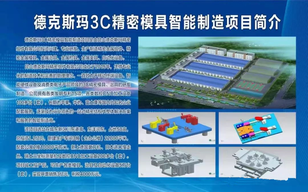 ![]() 壓鑄周刊(2018年11月19日 江西上饒)日前,昆山德克斯瑪精密組件有限公司投資興建德克斯瑪3C精密模具智能制造項目開工,該項目位于江蘇東臺市城東新區,主要建成生產各類模具、治具及自動化設備。 據了解,該建設項目總投資1.2億元,占地50畝,新建生產車間3幢(含辦公樓)22000平米,新上德國磨刀機、日本進口慢走絲、瑞士三坐標測量機及數控CNC加工設備200多臺(套)。項目峻工投產后,可生產各類模具、治具及自動化設備5萬臺(套),實現開票銷售3億元。 此次建設項目從事研發、生產制造精密金屬組件、精密金屬模具、金屬治具、金屬檢具、金屬夾具、自動化設備。產品主要應用于手機、電腦等電子產品配件。 昆山德克斯瑪精密組件有限公司成立于2015年7月,注冊地位于昆山市玉山鎮城北水秀路,主要從事精密金屬組件、精密金屬模具、金屬治具、金屬檢具、金屬夾具、自動化設備及配件的設計、加工、制造和銷售。 |