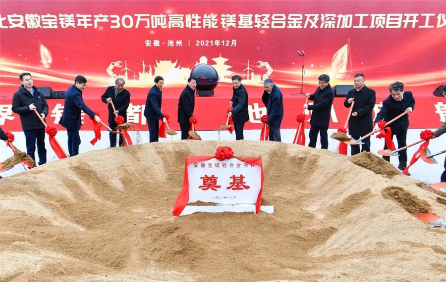2020年11月,南京云海特種金屬股份有限公司(“云海金屬”)、寶鋼金屬有限公司(“寶鋼金屬”)與青陽縣人民政府就安徽寶鎂輕合金項(xiàng)目舉行簽約,并在青陽縣設(shè)立合資公司——安徽寶鎂輕合金有限公司作為項(xiàng)目的實(shí)施主體,注冊(cè)資本為24億元。 近日,合資公司安徽寶鎂輕合金有限公司以44.27億元競(jìng)得青陽縣花園吳家冶鎂用白云巖礦采礦權(quán),以保證年產(chǎn)30萬噸高性能鎂基輕合金項(xiàng)目原材料的穩(wěn)定供應(yīng)。根據(jù)規(guī)劃,該項(xiàng)目將充分利用青陽縣豐富、優(yōu)質(zhì)的白云巖礦石資源,打造國內(nèi)、國際領(lǐng)先的鎂基輕合金及深加工基地。 中國寶武集團(tuán)總經(jīng)理胡望明、副總經(jīng)理侯安貴,中國工程院院士丁文江,寶鋼金屬黨委書記、董事長王強(qiáng)民,云海金屬董事長梅小明等出席了開工儀式。