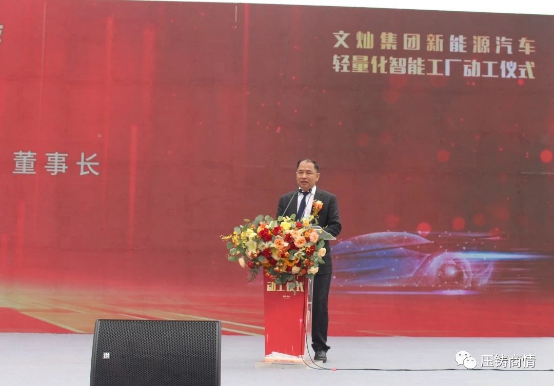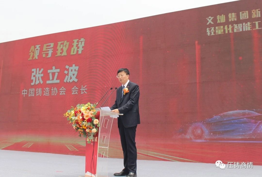 中國鑄造協會會長張立波致辭 中國鑄造協會會長張立波先生代表協會對文燦集團新能源汽車輕量化智能工廠動工表示衷心祝賀,并高度評價文燦集團的發展成就以及對家鄉經濟發展做出的貢獻。他表示,文燦集團經過幾十年的努力奮斗,尤其是近十幾年的快速發展,已經在汽車鋁合金零部件鑄造領域取得了卓越的成績,在全球共設有二十幾個生產基地,成為一家高度國際化、全球化的世界知名企業。文燦集團始終把南海區、里水鎮作為根據地,始終以家鄉的精神激勵集團的發展,在反哺家鄉的建設。