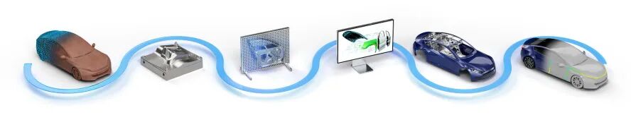 蔡司光學(xué)三維掃描技術(shù)可高速獲取高分辨率精準(zhǔn)掃描數(shù)據(jù),最終生成零部件全表面的全域三維點(diǎn)云; 基于三維掃描數(shù)據(jù),通過(guò)蔡司逆向工程軟件結(jié)合油泥模型開(kāi)展逆向工程,適用于汽車的全新設(shè)計(jì)開(kāi)發(fā),以及對(duì)于經(jīng)迭代優(yōu)化后現(xiàn)有CAD文件的適配調(diào)整。 模具車間