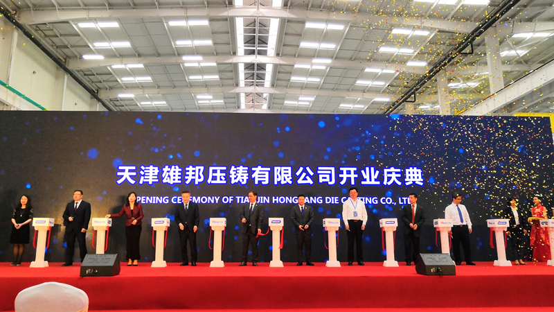 布勒壓鑄事業(yè)部全球總裁 Mr. Jonathan Abbis 致辭 生產(chǎn)基地覆蓋三大經(jīng)濟(jì) 天津雄邦于2015年5月開工建設(shè),總投資10億元,注冊資本4億元,占地面積10萬平米,建筑面積7.6萬平米,目前年產(chǎn)鋁合金壓鑄件2萬噸。天津雄邦是母公司文燦股份“北上戰(zhàn)略”的重要舉措。今天公司開業(yè),標(biāo)志著文燦股份正式完成在珠三角、長三角、環(huán)渤海等三大經(jīng)濟(jì)帶的戰(zhàn)略布局,形成自南向北、覆蓋中國主要的壓鑄產(chǎn)業(yè)聚集區(qū)、汽車整車及零部件產(chǎn)區(qū)的生產(chǎn)與配套格局。