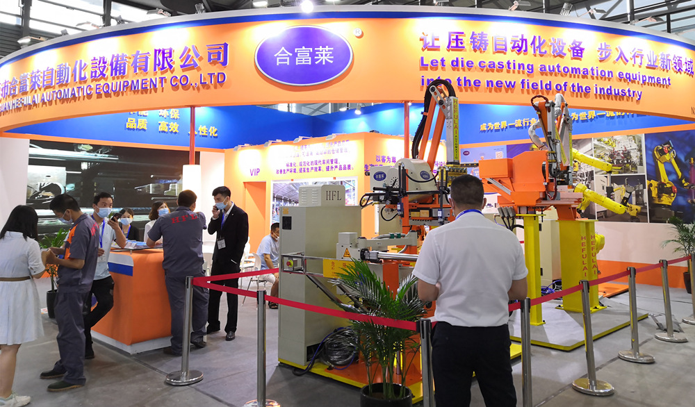 絡(luò)繹不絕的專業(yè)廠商前來洽談咨詢 大型機器人集成壓鑄島及成功案例 本屆展會,東莞合富萊還重點展示其機器人集成壓鑄島解決方案及成功案例。楊炳榮先生表示:“合富萊壓鑄島事業(yè)部成立多年來,在技術(shù)研發(fā)、市場開發(fā)方面取得不錯的成績,不僅自主研發(fā)了軟件、硬件方面配套系統(tǒng)和關(guān)鍵部件,還積累了豐富的實踐經(jīng)驗,同時獲得不俗的業(yè)績。”