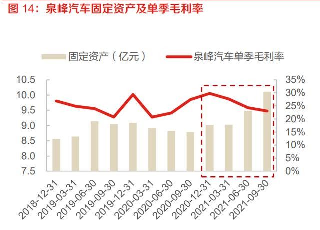 3.2 行業屬于重資產行業,盈利能力有一定周期性特征 輕量化壓鑄行業是重資產行業,項目開發前期需要投入土地、設備、廠房等固定資產,資本支出 增加,項目建設過程中因為固定資產折舊增加等因素拖累整體盈利能力,隨著項目投產完成并逐 步釋放新增產能,資本支出及折舊攤銷減少,產能利用率提升,盈利能力提升。 以愛柯迪、泉峰汽車進行比較分析。 2017Q3-2018Q3 愛柯迪投入較多資金用于購買固定資產,部分導致毛利率下滑。2017 年底愛柯 迪上市后募集資金用于建設精密壓鑄件、雨刮系統部件、精密金屬加工件等多個項目,計劃投入 資金超 15 億元,導致固定資產及折舊快速提升,2016Q1-2017Q2 平均單季度購建固定資產、無 形資產和其他長期資產支付現金 1.13 億元,2017Q3-2018Q3 平均單季度支付現金 1.51 億元,較 擴產前增長 0.38 億元;2018 年三季度末固定資產增長至 13.27 億元,同比 2017 年三季度末提升 48.6%。固定資產及折舊增加、汽車行業景氣度下滑等綜合導致2018年三季度毛利率下滑至33%, 較 2017 年四季度大幅下降 7.3 個百分點。 2020 年中愛柯迪再次擴產建設輕量化壓鑄件項目,短期盈利承壓,新項目完成后有望促進盈利提 升。2020 年 3 月公司公告將在柳州建設汽車輕量化鋁合金精密壓鑄項目,總投資約 5 億元,同時 還將在寧波投資建設產業園區,總投資約 10 億元,2020Q2-2021Q3 平均單季購建固定資產、無 形資產及其他長期資產支付現金 1.82 億元,較 2019 年平均單季支付金額增長 0.86 億元;2021 年三季度末固定資產 17.27 億元,較 2020 一季度末擴產前提升 25.6%,2021 年三季度公司毛利 率 24.8%,同比下降 6 個百分點,系受到固定資產及相關折舊攤銷增加、會計準則調整等因素影 響。根據公司前期項目建設計劃,預計2022年輕量化精密壓鑄件項目將建設完成并逐步實現產能 爬坡,將有效滿足前期在手訂單需求,產能利用率提升,有望提升 2022 年整體盈利能力。 從資本支出和毛利率的關系看,資本支出增加導致毛利率下滑,擴產完成后產能利用率將提升, 資本支出對毛利率的不利因素將減小。2018 年的資本支出達到 6.56 億元,處于 2015 年后資本支 出最高位,疊加 2018 年汽車行業景氣度下滑等因素,綜合導致愛柯迪毛利率跌至 34.23%,同比 下降 5.8個百分點,2018年后毛利率下滑系行業景氣度回落。2022年隨著柳州輕量化壓鑄件項目 建設完成,預計公司壓鑄件產品逐步放量,資本支出對毛利率的不利因素減小。 2020 年泉峰汽車新項目擴產,固定資產折舊增長并拖累盈利。根據 2020 年 10 月公告,泉峰汽車 將在馬鞍山建設汽車零部件智能制造項目,項目總投資額 20.5 億元,2020Q4-2021Q3 平均單季 購建固定資產、無形資產和其他長期資產支付現金 1.47 億元,2019Q1-2020Q3 單季平均支付金 額僅 0.22 億元;公司固定資產從 2020 年三季度末的 8.78 億元提升至 2021 年三季度末的 10.11 億元,同比增長 15.1%,受固定資產及折舊增長、會計準則調整等影響,2021Q3 毛利率 23.1%, 同比下降 4.4 個百分點。 據公告,由于輕量化壓鑄行業需求旺盛,公司投資的馬鞍山汽車零部件項目正在趕工加快進度, 首批壓鑄產能將于 2021 年 10 月底至 11 月初完成廠房建設,并逐步導入量產階段;此外預計匈牙利建設項目 2022 年三季度也將開始逐步量產,2022 年馬鞍山、匈牙利等地工廠產能均有望釋 放,有效解決目前壓鑄件產能瓶頸。