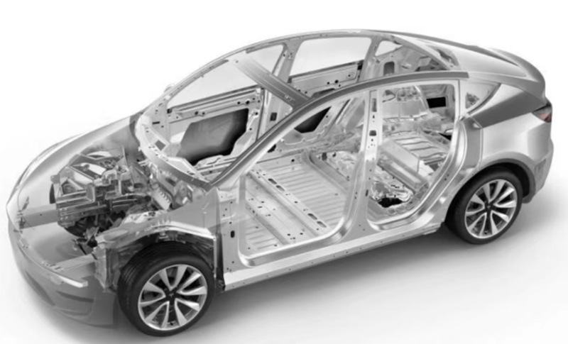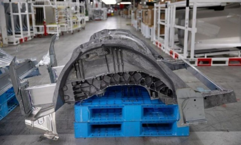 然后是3月、4月,特斯拉柏林工廠和得州工廠先后開業(yè),鋪天蓋地的報道和一條無人機高難度穿越柏林工廠生產(chǎn)線拍攝的視頻讓“一體化壓鑄”再次被頻繁提起。 全世界汽車生產(chǎn)的四大工藝都是沖焊涂裝,第一步將鋼板沖壓成小零件,然后把小零件焊接成大部件乃至白車身。特斯拉一體鑄造是把沖壓改為壓鑄,前兩步合成一步,直接鑄造出大部件。 這不僅改變了沖焊涂裝的汽車制造四大工藝,更是從思維上對傳統(tǒng)造車方式的改造。 最先采用該技術(shù)的Model Y后車架原本由70個零件沖壓、焊接而成,一體化壓鑄把它變成了一個零件,制造時間從1-2小時縮短至45秒-2分鐘,制造過程減少了300臺機器人,同時縮短生產(chǎn)線,節(jié)省30%占地面積。人工方面,主流汽車工廠焊裝車間要配 200~300 名工人,一體式壓鑄車間只需要 20-30 名工人。特斯拉官方稱一體化壓鑄技術(shù)將給 Model Y節(jié)省約 20%制造成本。 也就是說,零部件的70合一有多方面的優(yōu)勢,可以讓車身輕量化,節(jié)省成本,提高效率,縮短供應(yīng)鏈,整車的制造時間和運輸時間縮短,減少人工和機器人,提升制造規(guī)模。