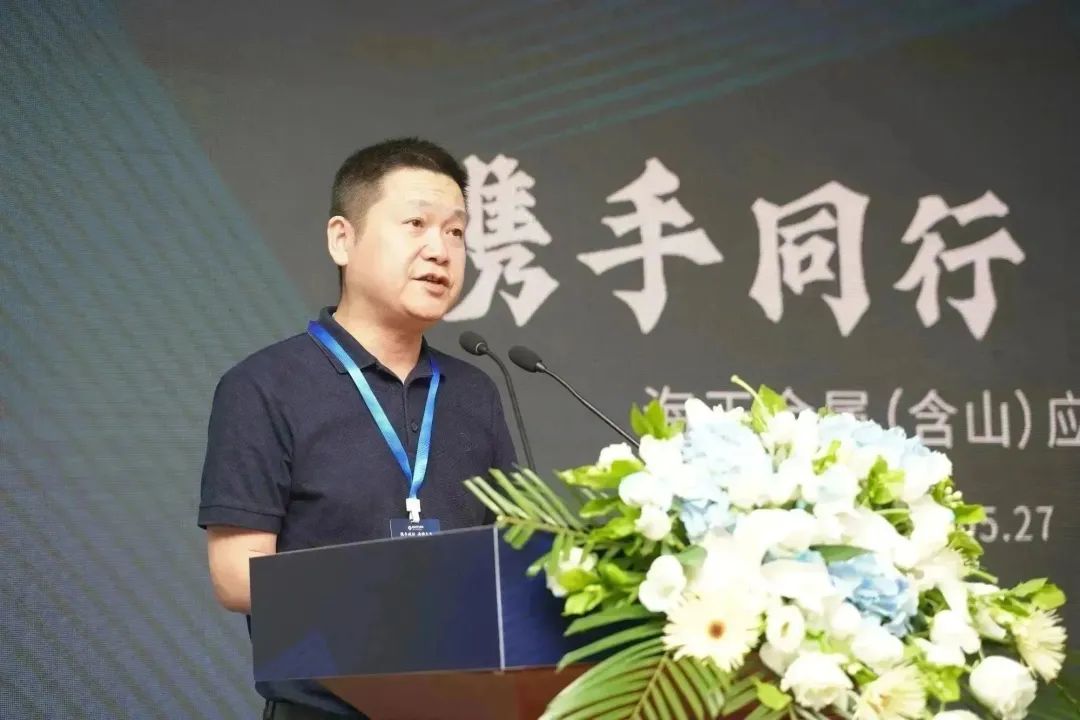 海天金屬總經理 樂曉東 開業慶典上,海天金屬總經理樂曉東致辭,海天金屬(含山)應用服務中心的落成具有重要意義,海天金屬將借此東風,乘風破浪,駛入高速發展的快車道,為公司持續發展注入新動能。
