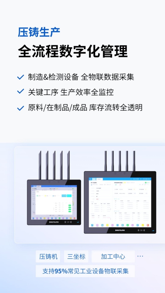 ![]() 昨天,歷時3天的上海國際有色壓鑄展順利結束。三天時間內人流量超萬人,吸引了全國各地乃至海外的有色壓鑄制造行業的客戶前來參加。 數益工聯在本次展會中首次亮相完整的壓鑄行業數字化工廠解決方案。創始人何盛華受邀參加了展會主題論壇并接受了行業媒體的采訪,資深數字化工廠解決方案專家為參觀的行業客戶進行了細致周到的講解,為此次上海國際有色壓鑄展帶來了不一樣的數字化轉型新風! 01.完整解決方案助力企業提質增效 本次數益工聯展位最大亮點就是覆蓋熔煉、壓鑄、機加工、包裝裝配等全鏈路生產環節的壓鑄行業數字化工廠完整解決方案。 四塊電視看板模擬顯示壓鑄企業各車間現場實時生成的報表,三臺智能終端生動展示了設備物聯是如何實現生產過程中的設備狀況、生產進度、人員管理等,為各壓鑄企業客戶呈現了數益DFS系統是如何為企業帶來數字化生產效益,有效實現提質增效,助力企業跑得快,走得遠。