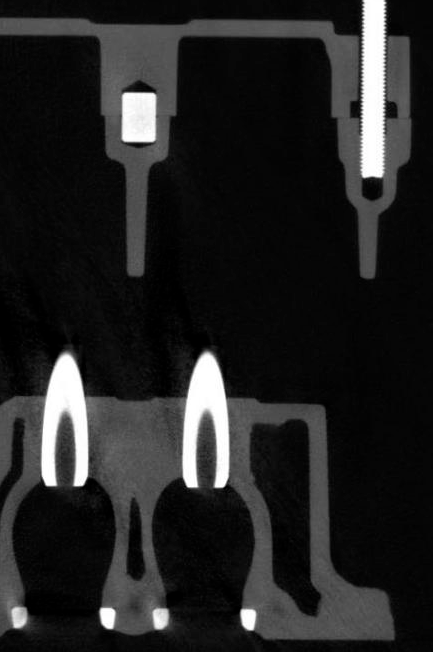 ![]() CT偽影始終是制約分析、數據處理、可靠性以及準確度的重大難題。毋庸置疑,偽影的種類繁多,像是射線硬化、多材料、散射或者環狀等均在其列。今日,要與諸位分享的乃是鋁壓鑄行業里最為常見的散射偽影。即便是單一材料的鋁壓鑄產品,通常也難逃散射偽影的影響。特別是在新能源汽車的零部件產品中,當壓鑄件的結構與尺寸愈發增大之際,散射偽影給工藝改進、分析以及量產檢測造成諸多困擾;而且工作人員有時還會誤將這一偽影視作是射線硬化所導致。 散射和射線硬化偽影的區別: 射線硬化是由于射線無法穿透被測物所導致的一種偽影,原本應是線性變化的灰度值發生了混亂所導致的。 X射線光子具有不同的能量范圍,例如自30至230keV 。如光子沿穿透方向能量衰減不同,則比爾-朗伯定律基于測量X射線強度將不足以確定穿透長度。