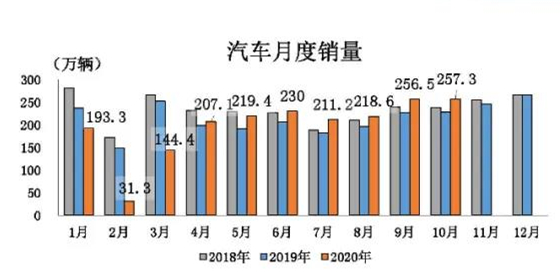 ![]() 昨日(11月11日),中國汽車工業協會信息發布會在北京召開。2020年10月,我國汽車產銷分別完成255.2萬輛和257.3萬輛,環比分別增長0.9%和0.1%,同比分別增長11%和12.5%。截至本月,汽車產銷已連續7個月呈現增長,其中銷量已連續六個月增速保持在10%以上。 10月,擴大內需戰略以及各項促進消費政策持續發力,國內統籌推進疫情防控和經濟社會發展工作成效明顯。市場需求繼續恢復,產業循環持續改善,企業利潤穩步回升,就業形勢總體穩定,消費市場持續穩定復蘇,疊加國慶和中秋雙節效應,汽車市場需求不減,產銷形勢總體向好,同比繼續保持增長勢頭。從產銷量同比看,當月汽車產銷繼續呈現兩位數增長,累計汽車產銷降幅已收窄至5%以內。 1-10月,汽車產銷分別完成1951.9萬輛和1969.9萬輛,同比分別下降4.6%和4.7%,降幅較1-9月分別繼續收窄2.1和2.2個百分點。
