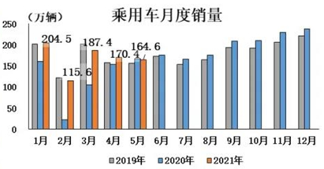 從全年的銷量來看,會比之前預測的“4%增長”高一些,全年實現同比6.5%的增長、整體銷量達到2700萬輛是比較樂觀的估計,新能源汽車從原來的180萬輛調整到200萬輛也是能實現的。有消息稱,因芯片短缺,目前全球汽車市場累計減產115.7萬輛,預計2021年全球汽車始終將因此減產超過200萬輛。 汽車產銷同比下降。 5月,汽車產銷分別完成204萬輛和212.8萬輛,環比分別下降8.7%和5.5%;同比分別下降6.8%和3.1%。1-5月,汽車消費總體保持穩定。汽車產銷分別完成1062.6萬輛和1087.5萬輛,同比分別增長36.4%和36.6%,增幅比1-4月繼續回落17和15.2個百分點。
