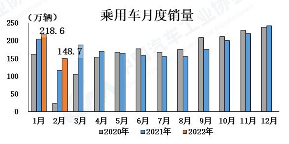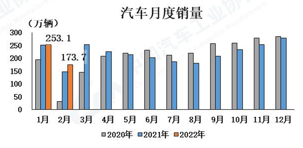 ![]() 近日(3月11日),中國汽車工業(yè)協(xié)會發(fā)布汽車工業(yè)經(jīng)濟(jì)運(yùn)行數(shù)據(jù)。2022年2月,我國汽車產(chǎn)銷分別完成181.3萬輛和173.7萬輛,環(huán)比分別下降25.2%和31.4%,同比分別增長20.6%和18.7%。其中,新能源汽車產(chǎn)銷分別完成36.8萬輛和33.4萬輛,同比分別增長2倍和1.8倍,表現(xiàn)總體依然出色,同比保持高速增長。 中汽協(xié)分析指出,由于春節(jié)假期因素的影響,2月汽車產(chǎn)銷環(huán)比大幅下降,同比增長,原因是新能源及汽車出口起積極的促進(jìn)作用,庫存回補(bǔ)需求拉動增長。此外,2022年1-2月,汽車行業(yè)產(chǎn)銷情況總體保持穩(wěn)定,同比繼續(xù)保持增長,且比2019年同期呈現(xiàn)10%的增長。 汽車產(chǎn)銷同比穩(wěn)中有增 2月,汽車產(chǎn)銷分別完成181.3萬輛和173.7萬輛,環(huán)比分別下降25.2%和31.4%,同比分別增長20.6%和18.7%。1-2月,汽車產(chǎn)銷分別完成423.5萬輛和426.8萬輛,同比分別增長8.8%和7.5%。